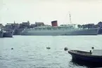 Foto visande passagerarfartyget GRIPSHOLM av Göteborg till ankars på Stockholms ström år 1963.