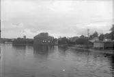 Kv. Klockaren, Landbogatan 2, Wallanders bageri. Gården kallades Wallanderska gården men tillhörde Frans Eriksson. Gränsade till Storgatan 7-9. Revs 1911. Nils Janssons gård och magasin t.h.