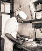 Högbergsgatan 51. Fritz Bergkvist i bageriet under storstrejken.