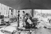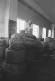 Regeringsgatan 14. Fröken Birgit Löfberg vid American Overseas Airlines bredvid en tårta, bakad på Oscar Bergs hovkonditori.