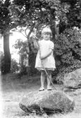 Kvinna, man och barn sitter på en "bergknalle", Östhammar, Uppland