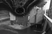 Tornet med tre av ubåten HVALENs besättningsmän sett från aktern.