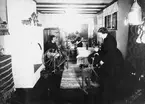 "Bygge och Bo" utställningen på Liljevalchs konsthall 1923. Bild av kvinnor somväver och spinner.