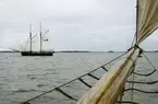 Ryska barken Kruzenshtern lämnar Göteborg. Ex Padua, en av Gustav Erikssons på Åland stora barkar som gick på vetetraden. Ryskt krigsbyte under andra världskriget.