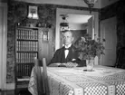 "1934. 24. Pontus Vikners barndomshem. Interiör af hans samlingar." "Kopia av Thorvaldsens Kristus. Dessa böcker och handskrifter förvaras numera på Bohusläns museum."