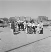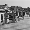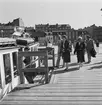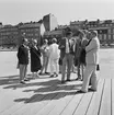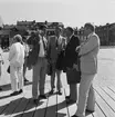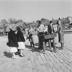 Gruppbild utanför Stora sliperiet år 1909 med de nio medaljörerna, bolagsstyrelsen med flera.
