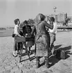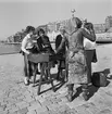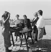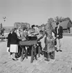 Gruppbild utanför stora sliperiet vid Orrefors glasbruk år 1909 med de nio medaljörerna, bolagsstyrelsen med flera.
