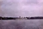 Foto 1953-08-06. Fartyget passerar Furusund, i bakgrunden Köpmanholm å Yxlan.