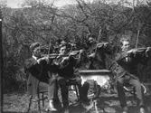 Två musicerande systrar från Grens i Herte. Bricken (f. 25/5 1894, gift m. Per Persson) spelar citra och Anna (f. 18/1 1889, gift m. Vilhelm Olsson) spelar gitarr.