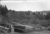 Påbörjat verkstadsbygge vid smedjan i Hagalund. Drivbänkar framför byggnaden.