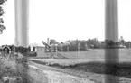 Clas Larssons villa vid Danska vägen (byggnad med två fönster). Framför magasin och stall. Gamla transformatorn, som kom bort för breddning av Danska vägen. Längst t.h. uthus till Settergrens affär. Clas Larsson hade affär, åkeri och matservering.