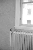 Fru Westin och konstnär Erikz i tittar ut genom Bergströmska villans fönster som krossats då ryska flygbomber släppts över Stockholm.