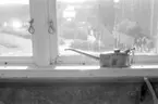 Ett spröjsat fönster på ett bostadshus i Högatorp.