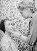 Deltagare i estraddebatten fr.v. Nils Eriksson, ombudsman i Sv. Postförbundet, Axel Sandstedt, byrådirektör och chef för generalpoststyrelsens personalbyrå rekryteringsavdelning, Lillian Forsman, postexpeditör Sth 9, Eugen Rismark, Postfolkets ordförande, förste postiljon Jan Gustafsson, Nacka, byrådirektör Egon Jonsson och byråsekreterare Eric Engström, båda från generalpoststyrelsens press- och informationsavdelning.