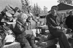 pojkar, fika, läger, scouter, diskställ, mat, fotografi, photograph