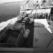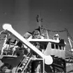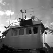 Småland, Kalmar län, Stranda härad, Mönsterås socken, Herrholmen. Förre skepparen Karl Johansson vid sin fiskebåt. Kappen till båten ligger på bryggan.