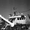 Vintermotiv med några fiskebåtar nedanför Nordbloms magasin.