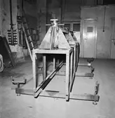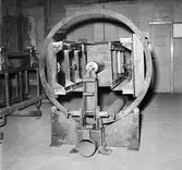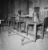 Dokumentation av Liljeholmens stearinljustillverkning. Verkstaden. Verktygssåp, i bakgrunden svarv och arbetsbänk. Här görs reperationer, nytillverkning av fixturer, hjälpmedel och mekaniseringar till produkten.