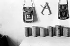 Göingeflickorna 4 september 1965 Två medlemmar ur musikgruppen "Göingeflickorna" är på väg upp till utomhusscenen framför Krämaren i Örebro. En av Göingeflickorna är i förgrunden av bilden på väg uppför en landgång som leder till scenen. Hon är klädd i folkdräkt och bär ett musikinstrumentfodral i sin vänstra hand. Bakom henne vid foten av en stege skymtar en annan bandmedlem i folkdräkt som är på väg att sätta foten på stegen för att äntra landgången. En kvinna och en liten pojke skymtar i bakgrunden vid sidan om stegen. Andra personer skymtar längre bort. Göingeflickorna var ett schlagerband som var aktivt 1955 - 1975.