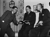 "Hembygden och naturen i centrum vid upsalakurs. Tredagarsmöte med lärare inlett på lördagen - några förgrundsfigurer vid hembygdskursen", folkskollärare Holger Nilsson, fil. dr. John Nihlén och intendent Nils Ålenius, Upplands studentnation, Uppsala 1942