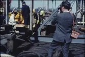 Slussens tunnelbanestation. Fotograf Gösta Wirén från Stockholms-Tidningen fotograferar den nya gången för tunnelbanetrafikanter på linje 19 till Högdalen.