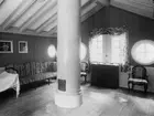 Modell av linjeskepp av Kronprins Gustav Adolf-typ i Sjöhistoriska museets utställning Klart skepp. Detalj.