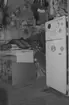 Orubricerat 18 februari 1966 Kvinna med en blombukett i sin vänstra hand står i en charkuterifabrik. Bredvid henne står en frysbox. I förgrunden står ett bord fyllt med leverpsatej, korvar och fläskkött. Till höger hänger korvar i olika storlekar längs med väggen.