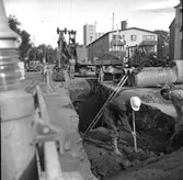 Gatuarbete i korsningen av Geijersgatan och Wallingatan, Uppsala 1946