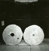 Fotografi från expedition till Peru 1920. Motiv av fyra expeditionsdeltagare som sitter i håligheter i ett berg. Mannen längst bak är Otto Nordenskjöld.
