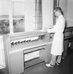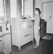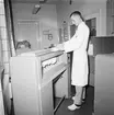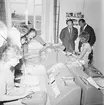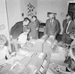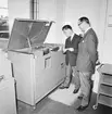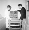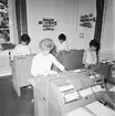 Numret på löntagarkontot går igen på löneanvisning och på lönebesked. Inger Holm på kameralbyråns hålkortsavdelning matar fram lönebeskeden ur hålkortsmaskinen under hålkortschefen förste byråsekreterare Lars Gunnar Ekengrens överinseende.