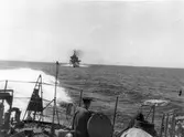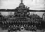 Simning vid Vitsgarn. I bakgrunden torpedkryssare, sannolikt PSILANDER. Längst bort till v vid Märsgarn skymtar det stora segelfartyg som även ses på Fo229259C och Fo229261C.
