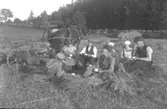 Husaby sn. Höstskörd vid Flyhov. Patron Andersson med sitt folk. Foto: 1860-talet