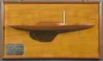 Halvmodell i mahogny, byggd på block. Silverplåt med graverad text. Gåva från direktör E Åkerlund, Stockholm år 1926.