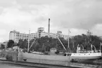 Arbeten för Hammarbyledens framdragning vid Danviken. Vy från Danviksklippan mot Danviks hospital och Fåfängan. I fonden Djurgården.