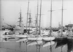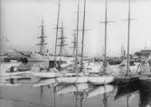 Innanför piren ett skolfartyg.