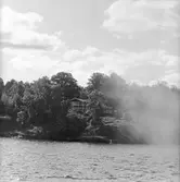 Fartyget synes utanför Hasseludden i bakgrunden Elfvik på Lidingön.
