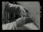 568 Trenters reportage. En man utför trolleri-trick med en käpp.
