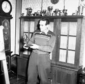 EN MAN SITTER VID SIN PRISSAMLING. Tillv.tid: 1938 Övriga nr: