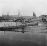 ILLERN U-BÅT Arbete med förstäv till u-båten. Foto den 16/8 1956.