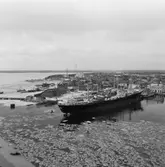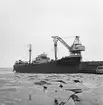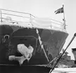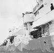 Bilden visar isbrytaren Thule på ett istäckt hav från babordssidan. Fartyget har tänt all belysning nattetid.