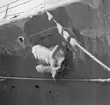 Marstrand 1916-1917. Isen låg fast till Skagen i 14 dagar. Två personer står på isen.