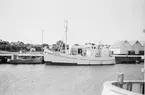 Flygplan J 29 Tunnan tillhörande F 3 Malmen tankas på F 4 Frösön flygfält. Kanslihuset med sitt valmade tak och värmecentralens skorsten syns i bakgrunden.