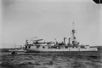 Öppet hus på marinfartyg vid kaj. På fartyget samt framför det står flygplan S 5. Ett flygplan J 4 står i förgrunden, längst till vänster. Människor i rörelse på fartyget.