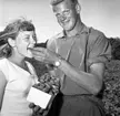 Jordgubbsförsäljning på Gävleutställningen sommaren 1946 vid Travbanan