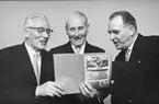 Postsparbankens 75-års jubileum 1959. Uppvaktning å postsparbankschefens Sven Lönnqvists tjänsterum.