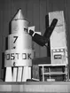 Generalpostdirektör Wilhelm Roos gravsten på Norra Kyrkogården i Stockholm. En krans från postsparbanken är nedlagd med anledning av Postsparbankens 75 års jubileum, 1959.