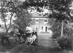 Familj samlade runt bord med kaffebricka, 1920-tal