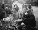Medföljande text: "Kaffepaus under sjösättning vid Karl Stjerns varv på Galtö. Bilden tagen år 1907. Originalfoto tillhörande Tyra Grahn, Galtö".