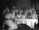 Hemkonsulent Rut Ingeborg Jonsson (nr 4 från vänster, Högstedt som gift) omgiven av kursdeltagare i den veckolånga konserveringskurs som gick av stapeln i prästgården i Björklinge hösten 1934. Björklinge husmodersförening anordnade kursen medan Hushållningssällskapet bekostade den. Hemkonsulent Jonsson hade hållit liknande kurser i Hjälsta, Nysätra, Alunda, Hacksta och Bälinge. Hon tyckte att vad man framför allt får lägga an på är att lära eleverna lättare och bättre arbetsmetoder i konserveringsarbetet.