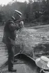 Kronprins Gustav Adolf fiskar kräftor vid Emån 1930-talet.